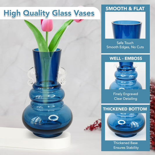 Glass Vase for Home Decor (2Pcs- 24cm)|Center Table Decorative Items| Flower Vases for Home Decor| Dining Table Decorative Items| Transparent Flower Vase for Living Room, Office, Blue