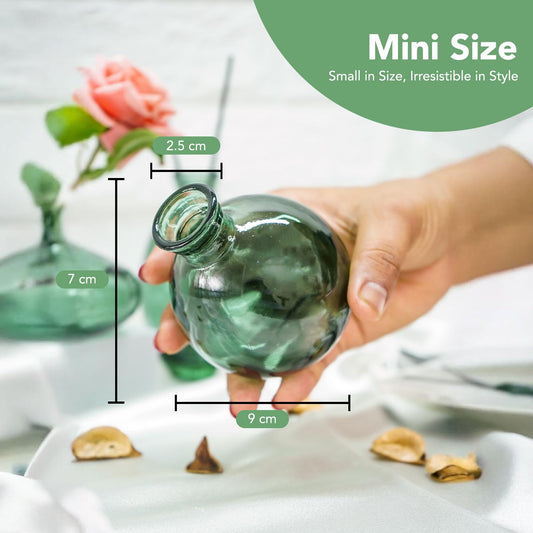 Green Glass Bud Vases Flower Pots for Home Decoration (Set of 3) | Center Table Mini Decorative Items | Transparent Glass Vase for Water Plants | Glass Planters for Indoor Plants