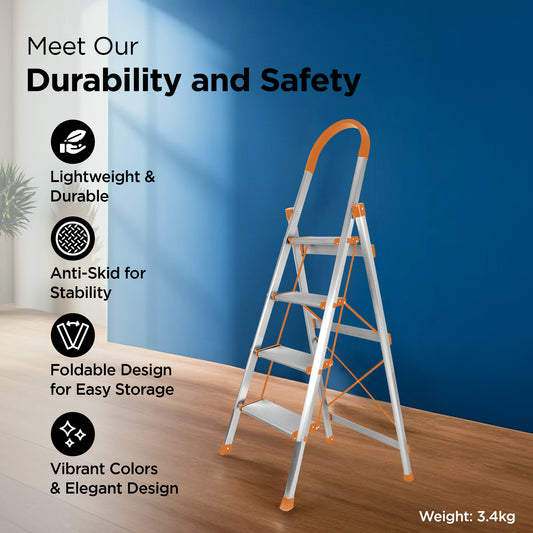 4 Step Stepladder with Lightweight Aluminium Frame | Foldable Design | Made in India