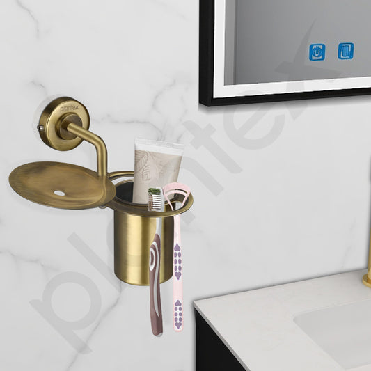 304 Grade Stainless Steel 2in1 Soap Holder with Tumbler Holder/Bathroom Accessories - Daizy (Antique)