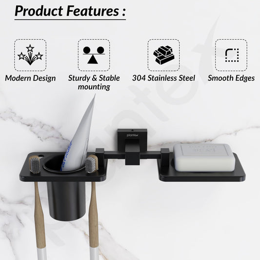 304 Grade Stainless Steel 2in1 Soap Dish with Tooth Brush Holder/Soap Stand/Tumbler Holder/Bathroom Accessories - Wall Mount (Matt Black)