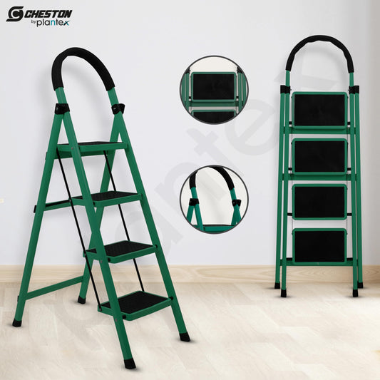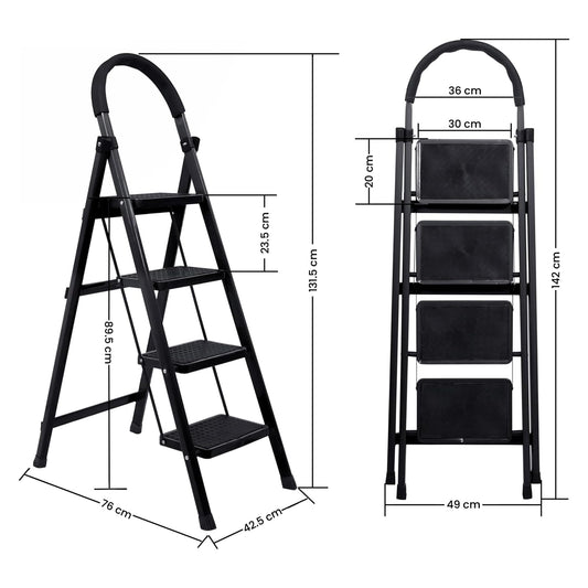 Cheston Foldable GI Steel 4-Steps Home Ladder | 4.8 Feet Anti-Skid Step Ladder with Wide Pedal & Hand Grip | Shock-Resistant Foldable Ladder for Home Use | Supports 150+ Kgs | Black 4 Step