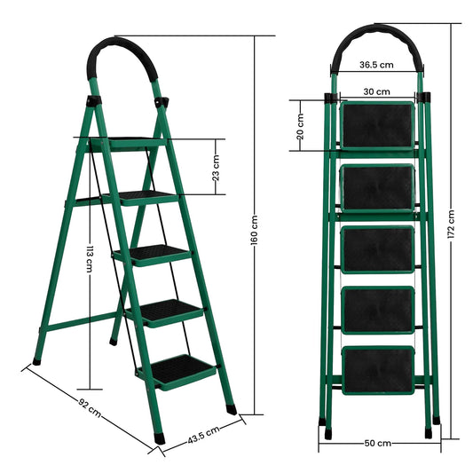 Cheston Foldable GI Steel 5-Steps Home Ladder | 5.6 Feet Anti-Skid Step Ladder with Wide Pedal & Hand Grip | Shock-Resistant Foldable Ladder for Home Use | Supports 150+ Kgs | Green 5 Step