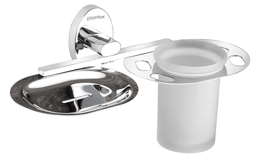 304 Grade Stainless Steel 2in1 Soap Holder with Tumbler Holder/Bathroom Accessories - Daizy (Chrome)
