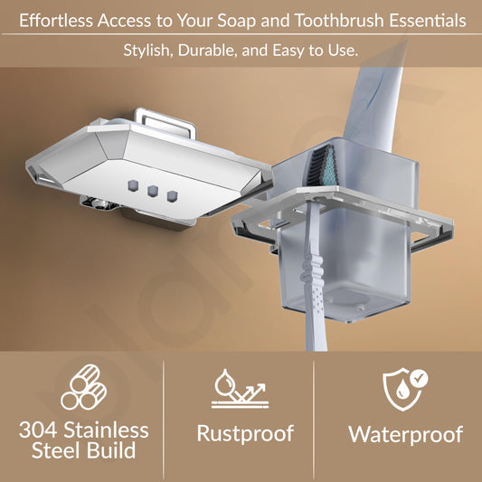 Viewing304 Grade Stainless Steel 2in1 Soap Holder with Tumbler Holder/Bathroom Accessories - Pack of 1, Squaro (Chrome)