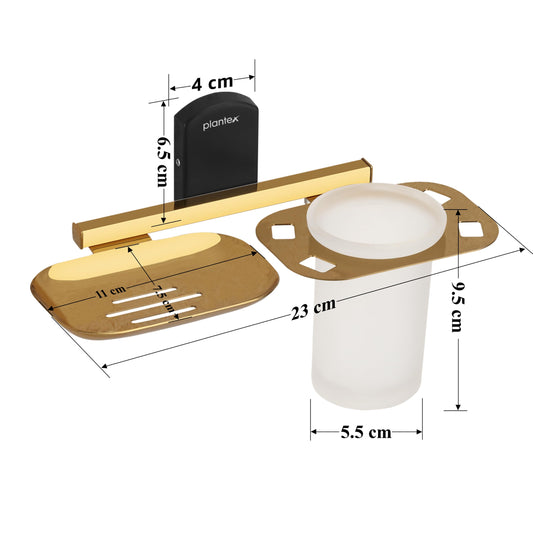 304 Grade Stainless Steel 2 in1 Soap Dish with Tumbler Holder/Soap Stand/Tooth Brush Holder for Bathroom/Bathroom Accessories - Parv (Gold & Black)
