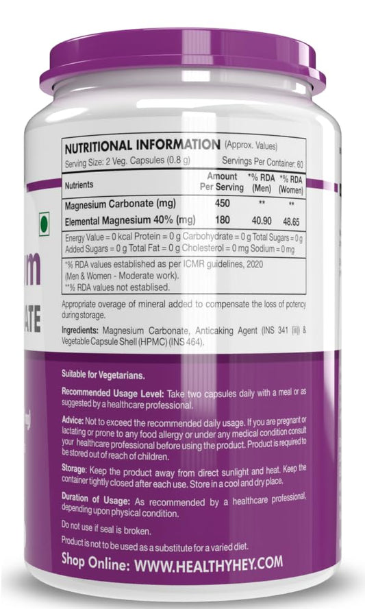 HealthyHey 120 Capsules: Magnesium Carbonate - Supports Health | 450mg