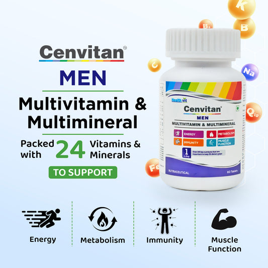Cenvitan Multivitamin for Men | Men Daily Nutrition, Immunity Booster | Hair, Skin and Nails | Bone Health | Energy Boost | Metabolism Booster - 60 Tablets (24 Nutrients)