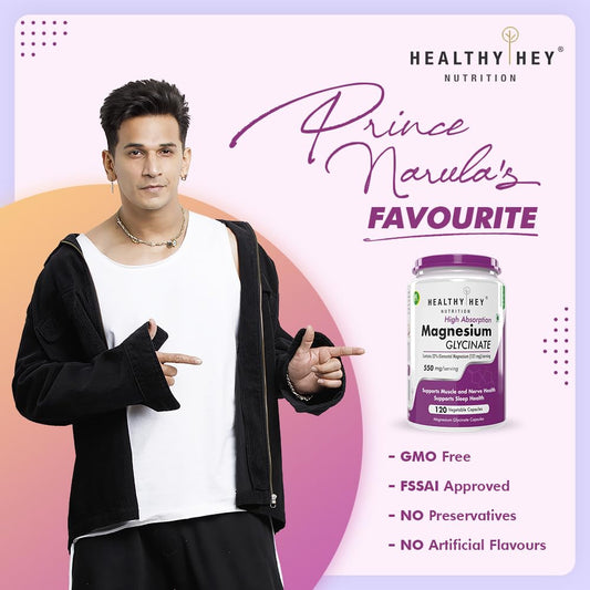 HealthyHey Nutrition Magnesium Glycinate High Absorption for Sleep, Cramps, & Nerves Health -120 Vegetable Capsules