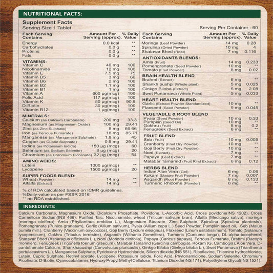 Plant Based Wholefood Multivitamin for Women Enriched with 51 Ingredients Includes Micronutrients, Amino Acids, Superfood Greens, Fruits, Vegetables & other Extract & Powder – 60 Tablets