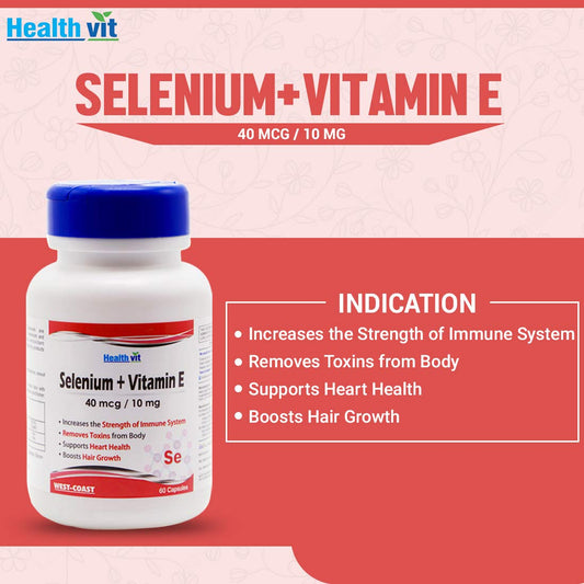 Selenium 40mcg + Vitamin E 10mg As Powerful Antioxidant | Removes Toxins From Body | Supports Heart Health | Boosts Hair Growth |Vegan And Gluten Free | 60 Capsules