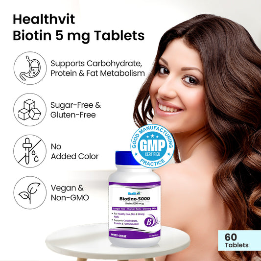 Biotino5000 Vitamin B7 - Hair Growth Support | 60 Tablets | Vegan | Unflavored