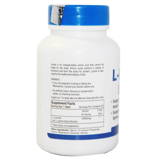 L-Lysine 1000mg Essential Amino Acid | Supports Membrane Health | Support Immune System | Vegan And Gluten Free | 60 Tablets