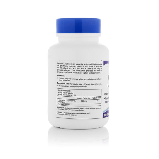 L-Lysine 500mg Essential Amino Acid | Supports Membrane Health | Support Immune System | Vegan And Gluten Free | 60 Tablets