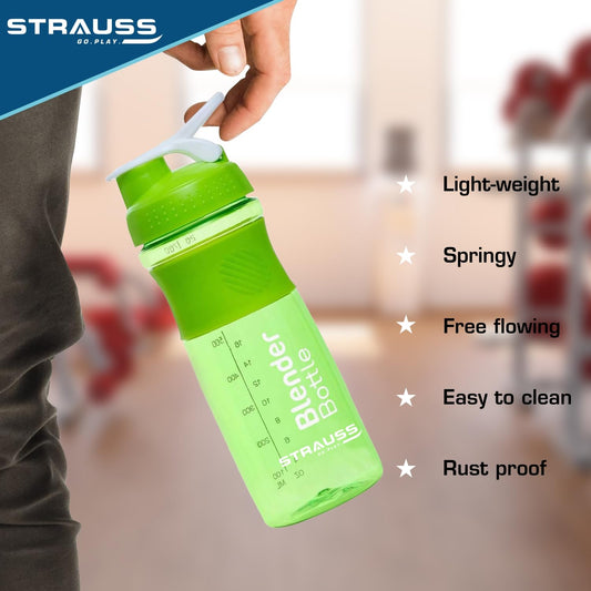 STRAUSS Blender Shaker Bottle | Leakproof Shaker Bottle for Protein Shake, Pre-workout and Bcaa Shake | Protein Shaker Bottle for Gym | Ideal for Men and Women | BPA-Free Material- 760 ML,(Green)