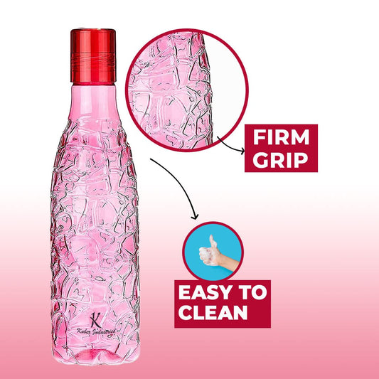 Urbane Home BPA-Free Plastic Water Bottle | Leak Proof, Firm Grip, 100% Food Grade Plastic Bottles | For Home, Office, School & Gym | Unbreakable, Freezer Proof, Fridge Water Bottle | Pack of 4|Pink