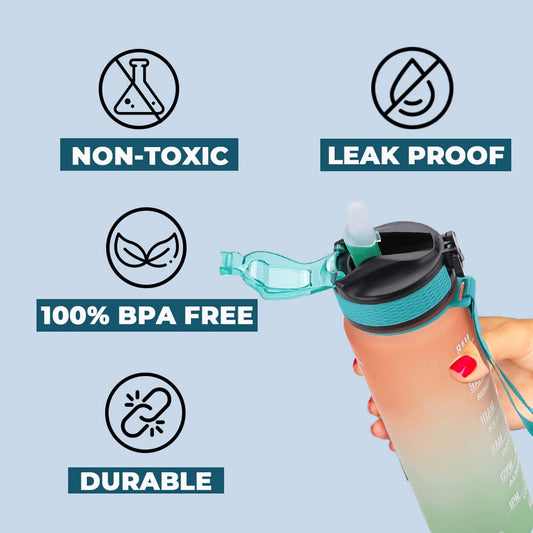 Urbane Home Motivational Water Bottle with Time Marker | Sipper Water Bottle for Kids & Adults with Straw | For Gym, Home, Office & School | Orange Green -1 L