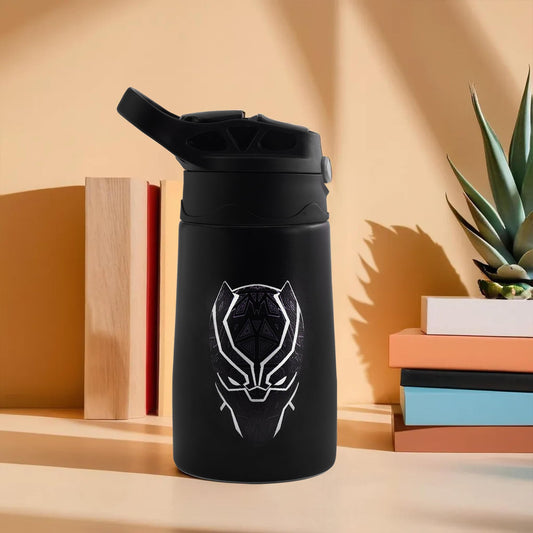 Urbane Home Stainless Steel Kids Water Bottle | Black Panther Kids Water Bottle | 350 ml Insulated Water Bottle | Water Bottle with Push-Button Flip Lid | Water Bottle For School | Black