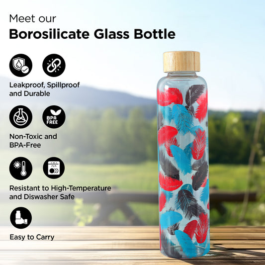 Glass Water Bottles | Borosilicate Glass Water Bottle for Fridge With Bamboo Lid | For Home, Office, Travel, Fridge Bottles | Leak Proof, Dishwasher Safe | 750ml White-Blue