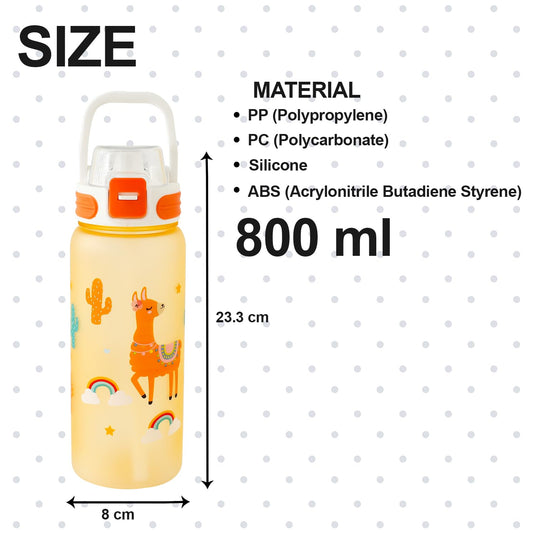 Kids Water Bottle with Straw & Locking Flip Lid | 800 ml | Orange | Dishwasher Safe | Unicorn Theme