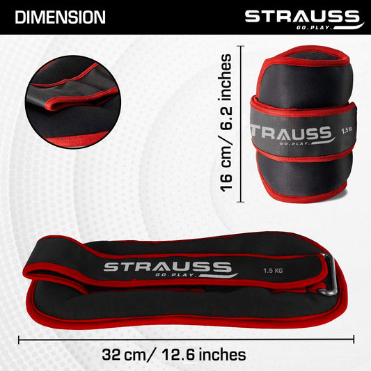 Strauss Adjustable Ankle/Wrist Weights 1.5 KG X 2 | Ideal for Walking, Running, Jogging, Cycling, Gym, Workout & Strength Training | Easy to Use on Ankle, Wrist, Leg, (Red)