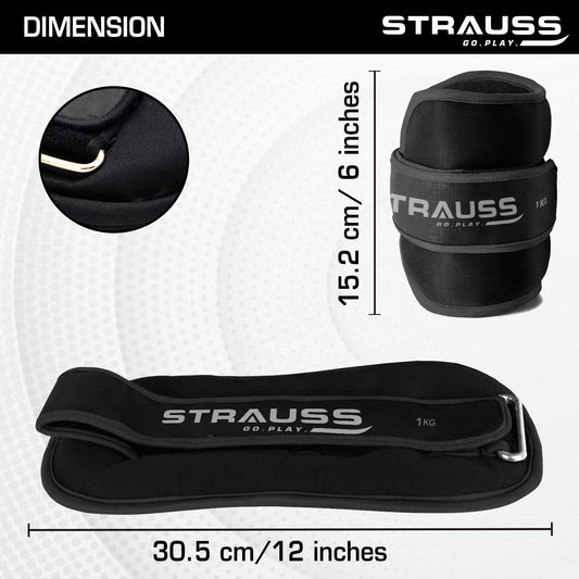 Strauss Ankle Weights for Exercise & Fitness|Adjustable Round Belt Design|Leg Weights for Strength Training,Walking Running, Jogging,Exercise & Gym Workout|Comfortable & Durable| 1Kg(Each)(Black Pair)