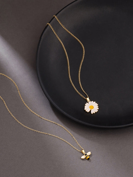 Pendant Necklace for Women | Fashion Golden Flower & Bee Pendant for Girls | Chain Necklace Combo of 2 Pcs Neck Chains for Girls | Birthday Gift for Girls