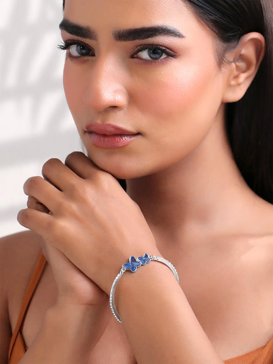 Valentine Gift for Girls Silver Plated Blue Butterfly Crystal Bracelet for Women and Girls