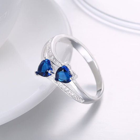 Crystal Rings For Women | Dual Heart Shaped Blue Stone Crystal Ring Pack of 1 | 925 Sterling Silver Finger Ring | Birthday Gift For Girls & Women Anniversary Gift for Wife