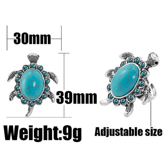 Good Luck Tortoise Design Turquoise Rhinestone Big Turtle Silver Plated Adjustable Rings for Women and Girl's