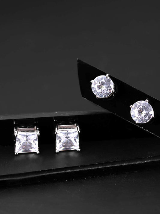 Combo of 2 Pairs: Magnetic Non-Piercing Stud Earrings | 0.6 cm | White Cubic Zirconia | Silver Tone