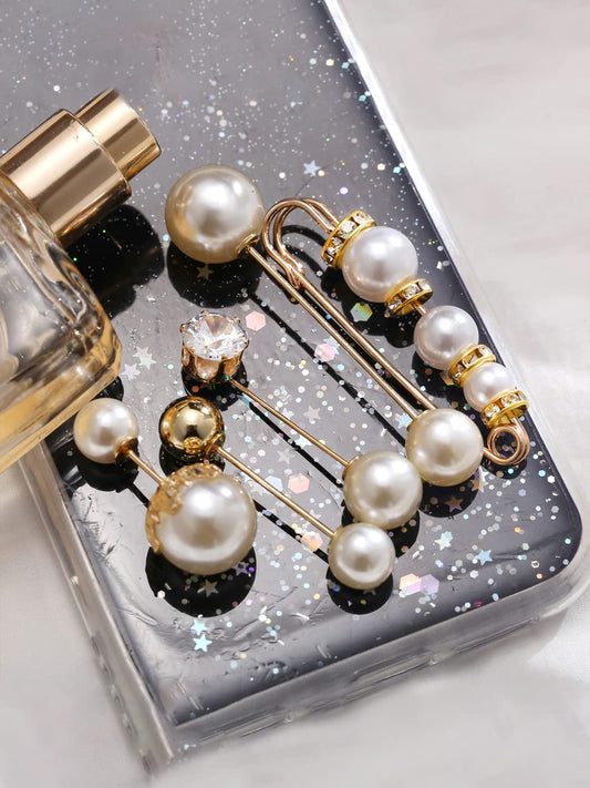 Brooch for Women and Girls | 6 Pcs Pearl Brooch Pins Sweater Shawl Clips Faux Pearl | Collar Safety Pin Clothing Dresses Decoration Accessories | Birthday Gift for Girls and Women