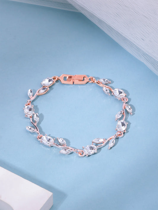 Women Crystal Bracelets | Rose Leaf Shaped Rose Gold Plated Bracelets | White CZ Crystals Bracelet For Woman | Birthday Gift for Girls & Women Anniversary Gift for Wife