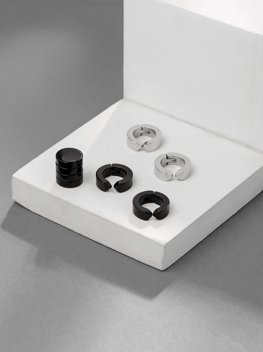 Earrings for Men and Boys Black Non Piercing Stud Earrings for Men | 3 Pairs Stainless Steel Stud Hoop Magnetic Earrings for Boys | Birthday Gift for Men & Boys Anniversary Gift for Husband