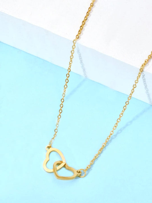 Pendant for Women and Girls Golden Pendant Necklace | Staineless Steel Valentines Special Dual Heart Chain Necklace | Birthday Gift for girls and women Anniversary Gift for Wife