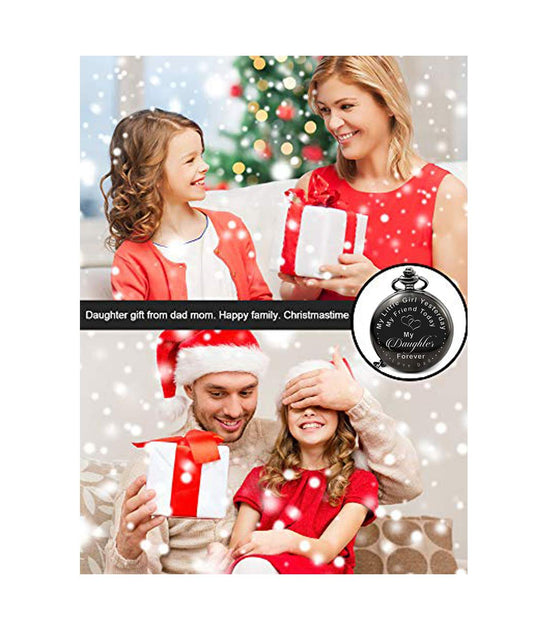 Black Pendant for Women Daughters Special Pocket Watch Pendant for Father's Little Princess Unique Memorable Gift for Daughter Stainless Steel Watch for Women and Girls.