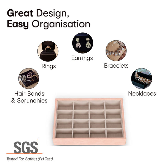 16 Cells Pink Jewellery Organisers Storage Box with dividers | Rectangular Storage Box for Earning, Necklace, Rings, Bangle, Bracelets, Charms, Pendant | Jewellery Organisers for Drawers