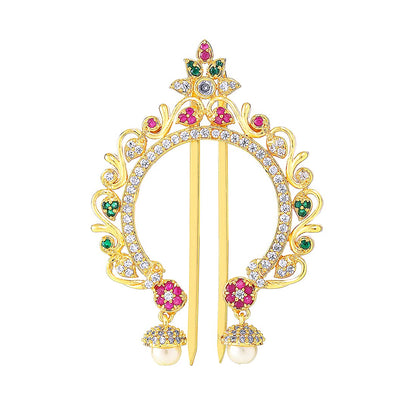 1 Count MultiColor Juda Pin: Flower Hair Accessory for Bridal | Gold Plated