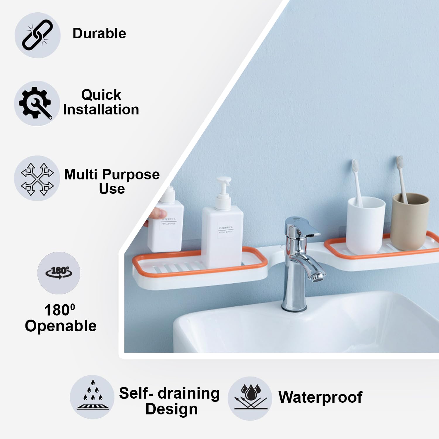 • STREAMLINED ORGANIZATION: Facilitating efficient organization, this shelf offers designated spots for toiletries, spices, and other essentials for easy accessibility.
