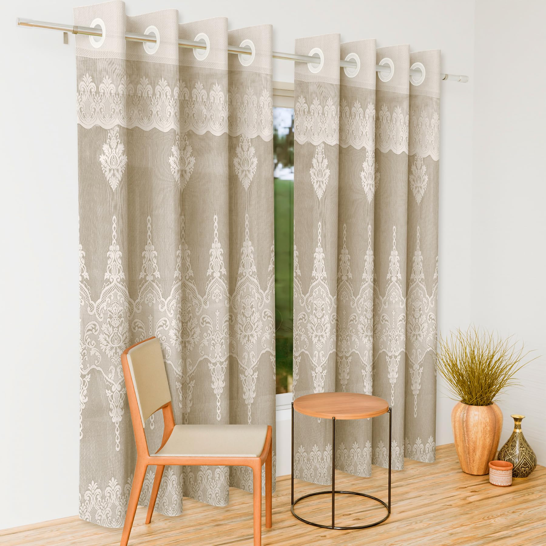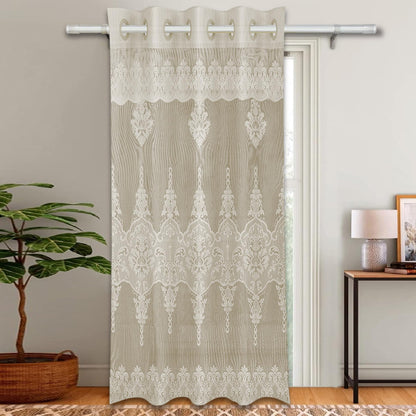 Heart Home Door Curtain|Darkening Door Curtains|Premium Drapes for Bedroom|Sheer Curtain with 8 Rings|Parda for Living Room|Net Frill Door Curtain|7 Ft|SY15ZZ|Cream