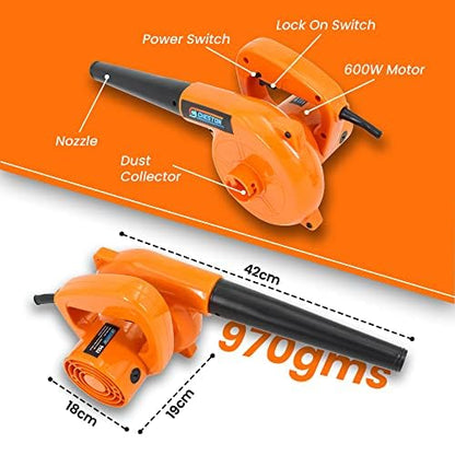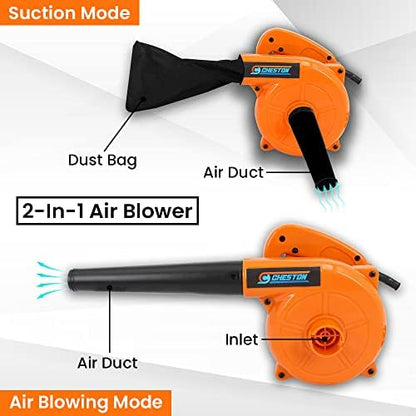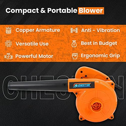 Cheston 500W 2 in 1 Air Blower and Vacuum Cleaner for Home 13000 r/min Copper Wiring Electric Blower (Yellow) + 5 Meter Extension 2 Pin CordCapacity Upto 1000W (Orange)