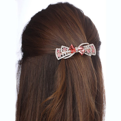 1 Unit Hair Clips: Classic Red Bow Shaped Barrette | 8.2cm x 4cm | Metal | For Women & Girls