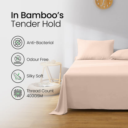 Mush 100% Bamboo Bedsheet for King Size Bed with 2 Pillow Covers | Luxuriously Soft, Breathable and Naturally Anti Microbial Thermoregulating Bed Sheet 400TC (Peach)