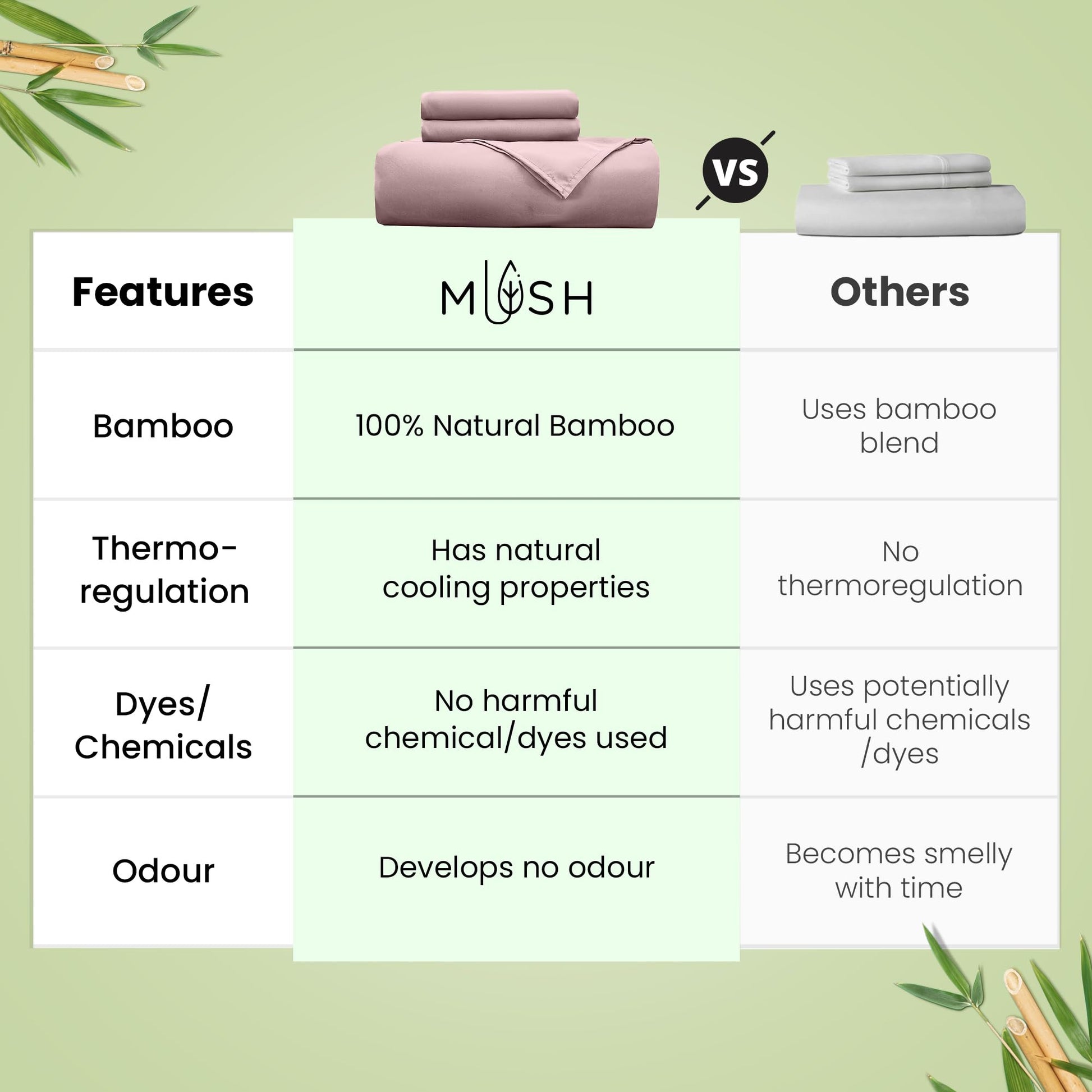 Introducing the 100% Bamboo Bedsheet with 2 Pillow Covers by Mush, your ultimate bedding solution for a luxurious sleep experience. This King Size bedsheet measures 108” x 108” and is made from premium 100% genuine bamboo. The silky-smooth fabric is not only soft but also thermoregulating, ensuring you stay cool and comfortable all night long.