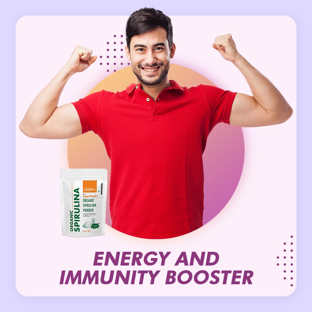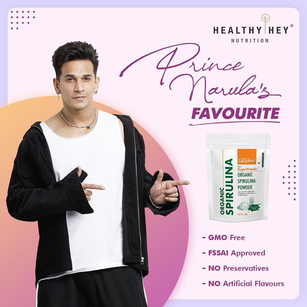 Introducing the HealthyHey Organic Spirulina Powder by Healthyhey, a potent superfood packed with nutrients. This 100 g pack of pure spirulina is a natural source of protein, vitamins, and minerals, designed to elevate your health and wellness. With its unflavored form, it's perfect for adding to smoothies, juices, or your favorite recipes without altering the taste.