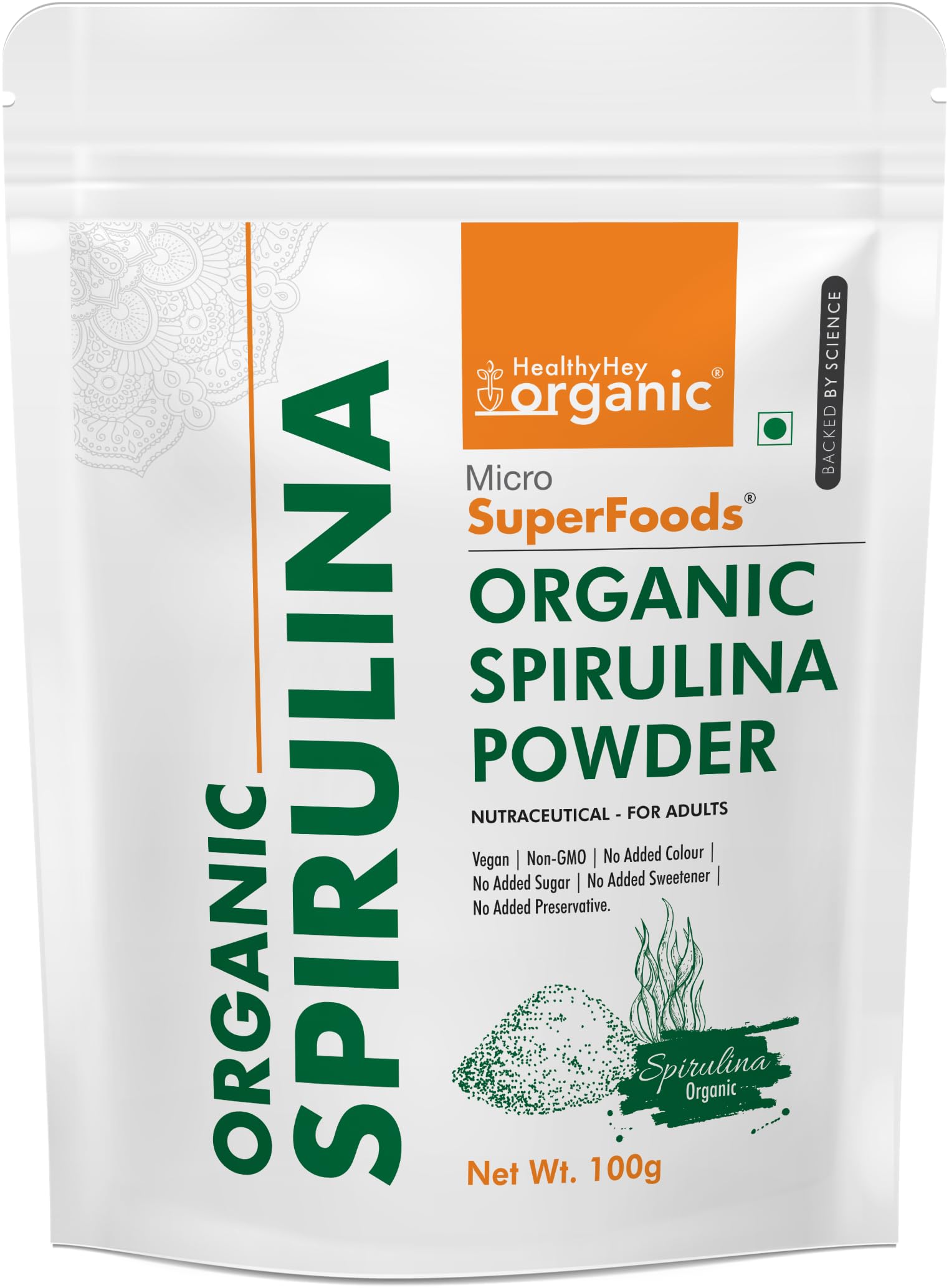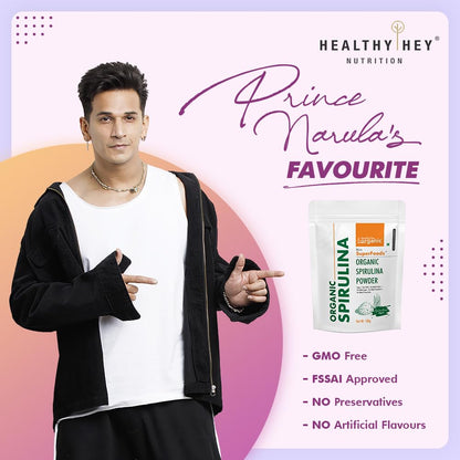 HealthyHey Organic Spirulina Powder Micro Superfoods, Rich in Protein, Vitamins & Minerals - 100 g