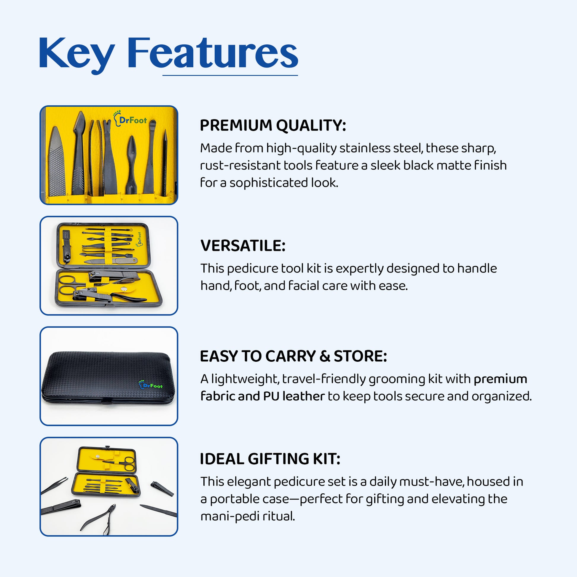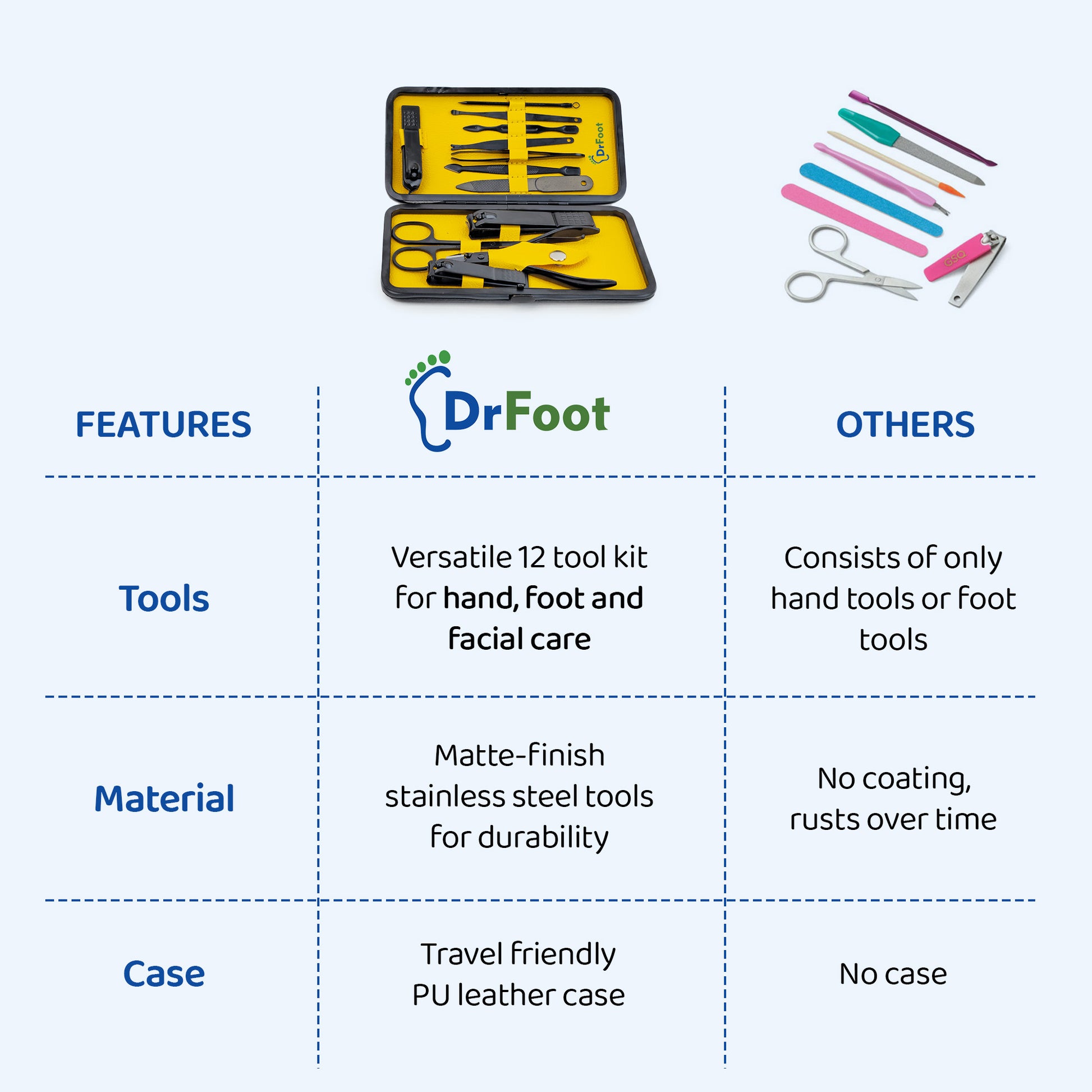 Dr Foot Pedicure Kit for Women for Foot | Manicure Pedicure Kit Products | Manicure Kit | Pedicure Tools | Nail Cutter Kit | Pedicure Set | Manicure Kit for Women | Pedicure Tools for Feet | 12 in 1