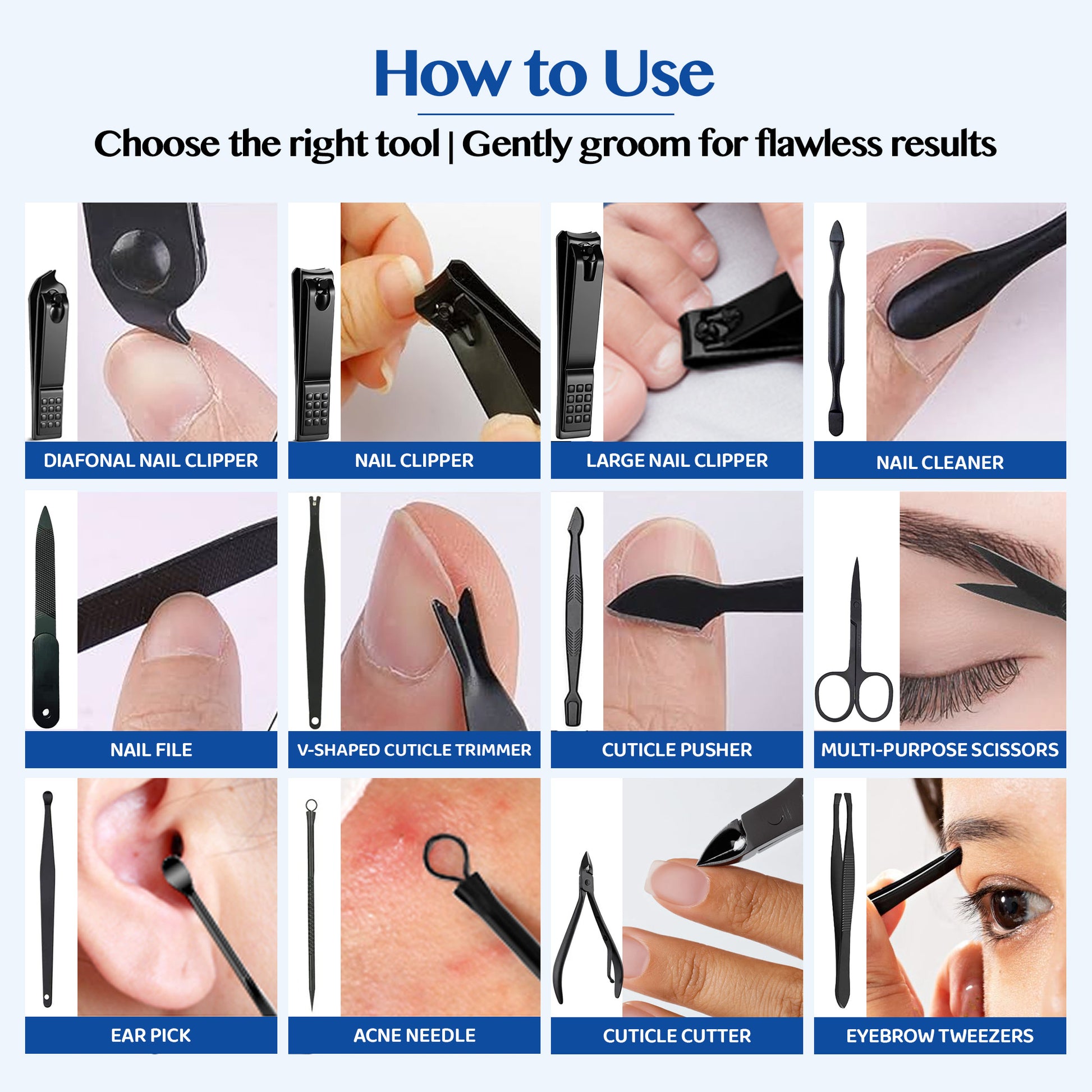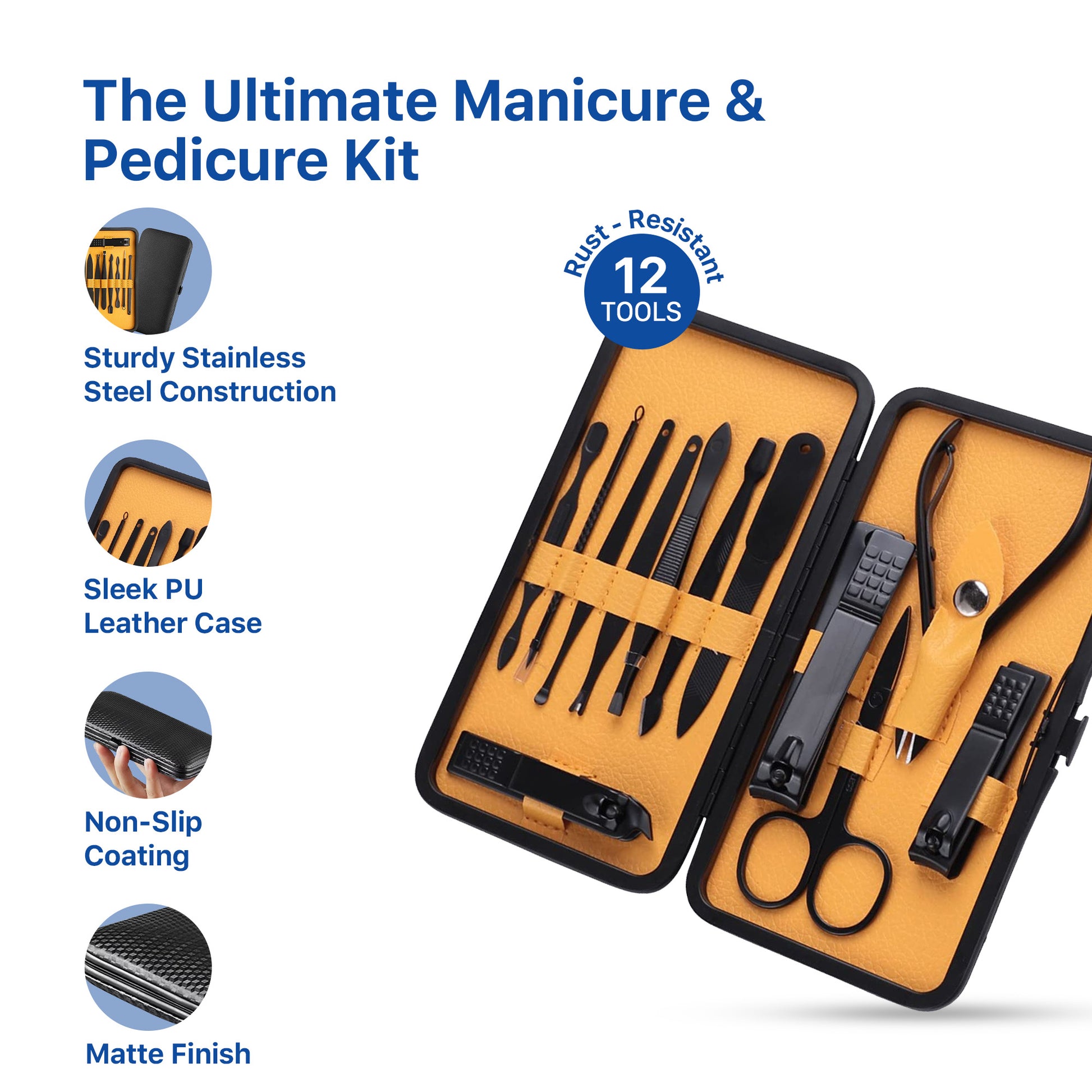 • PROFESSIONAL 12 Pc KIT: This comprehensive set includes nail clippers, cuticle trimmers, toenail nipper, and more, satisfying virtually all your grooming needs.