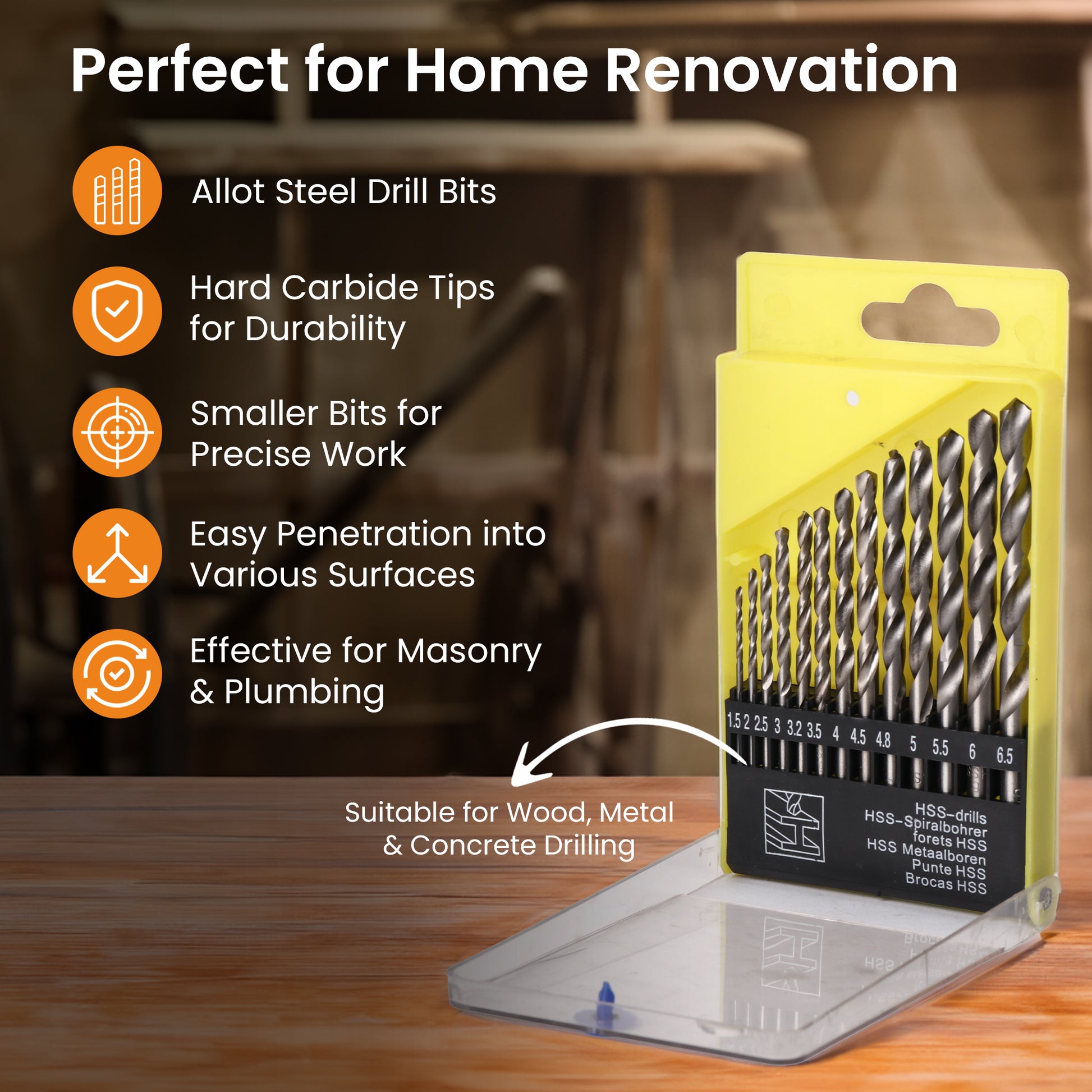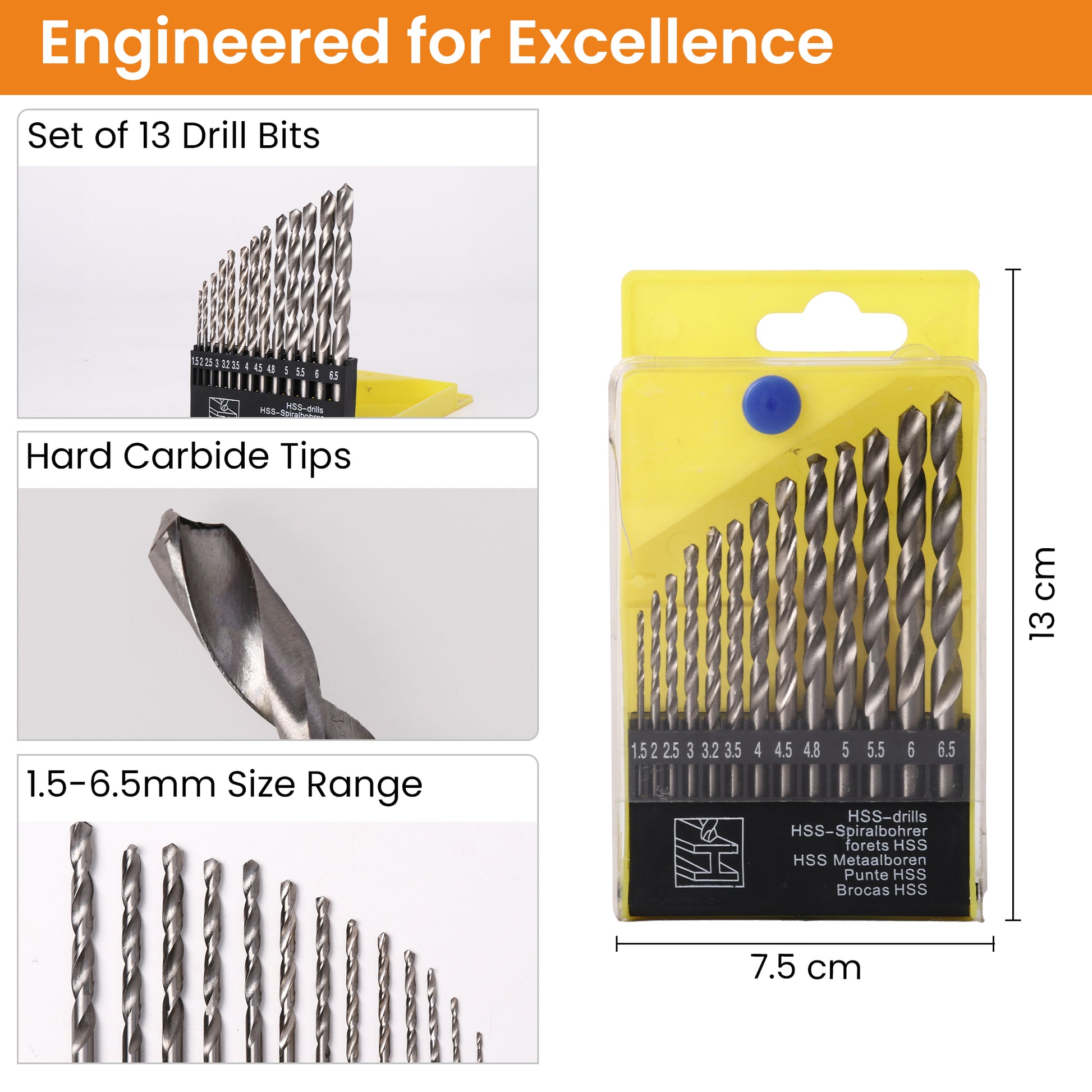 9pc Drill Bits Set - Universal for Wall, Wood, Metal | Includes HSS Bits for 10mm & 13mm Drills | Silver