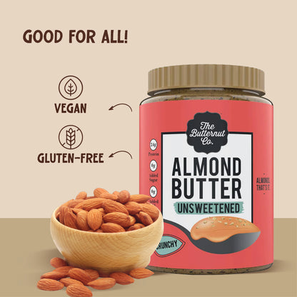 The Butternut Co. Almond Butter Crunchy 1kg - Unsweetened, 100% Dry Roasted, Heart-Healthy Fats, Protein Source, High in Vitamin E - Gluten-Free, Vegan, Keto-Friendly